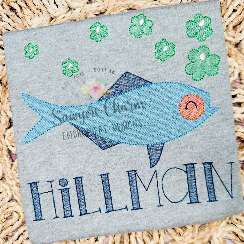 Emb - fish with shamrock bubbles